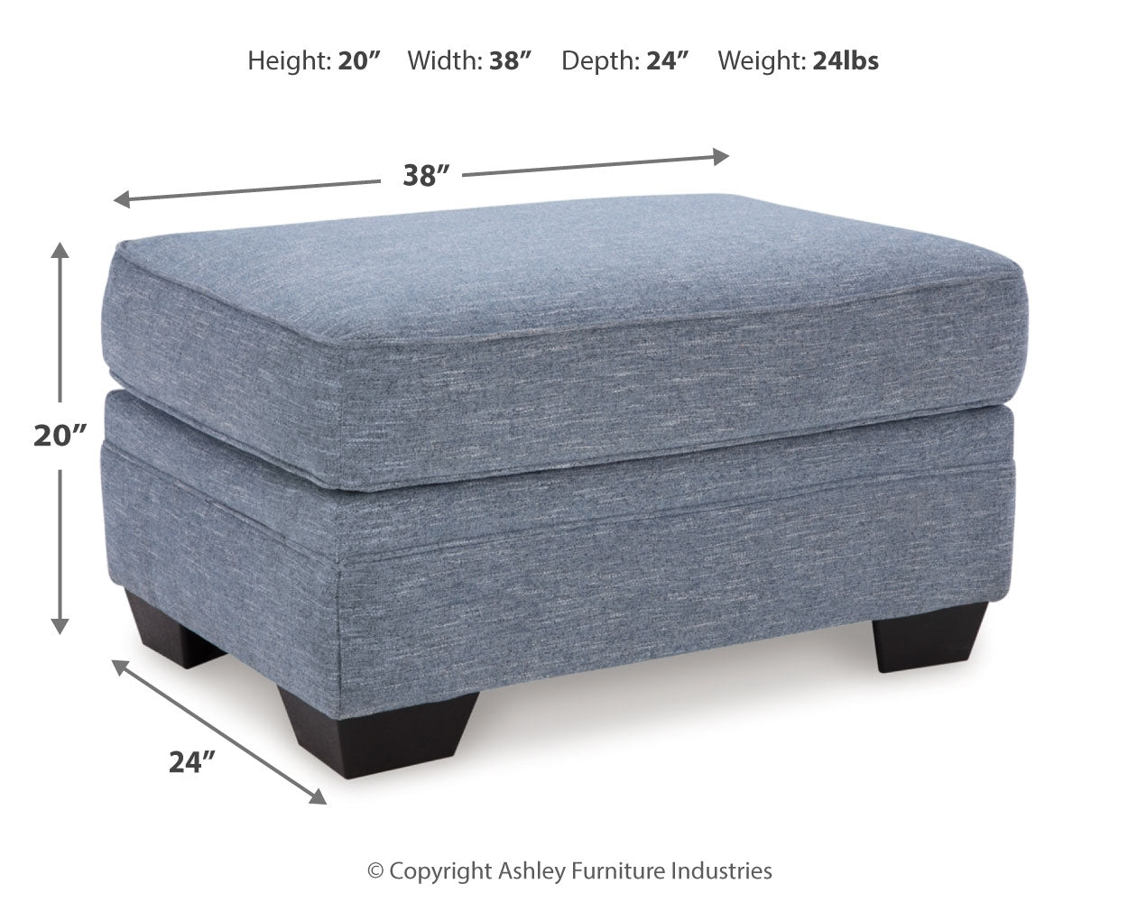 | Ottoman | 38" | 24" | 20" |